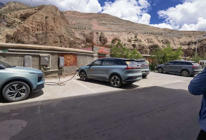 左贡早餐后8点30车队出发八宿多拉神山温泉宾馆(196km),行程4小时,车队补电,2个60kw快充,2个40kw快充,4个7kw慢充。午餐休整。