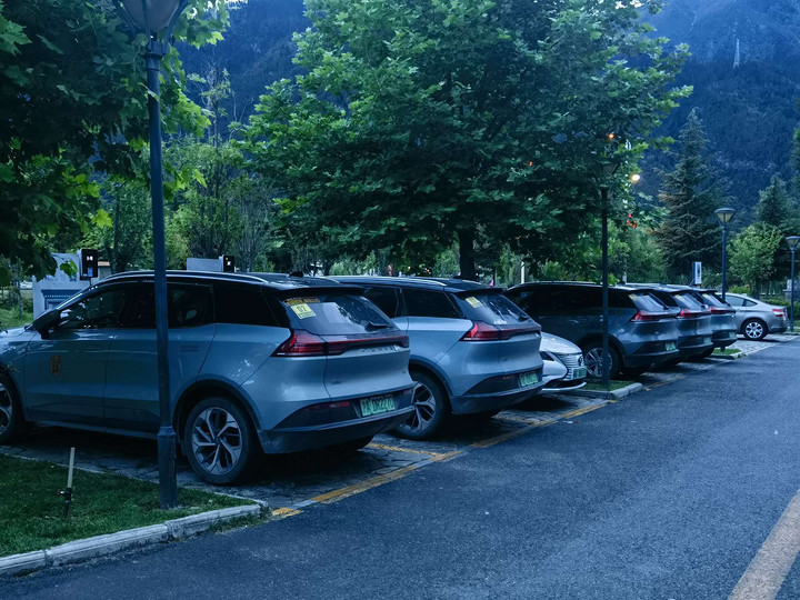 林芝早餐后,车队出发巴松措景区(126km),景区外有充电桩(据说免费的)。